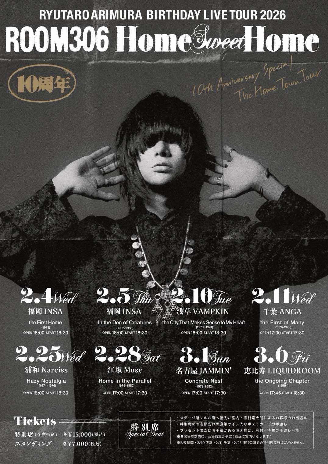 2025.12.17 有村竜太朗 公演決定! 有村竜太朗 10th AnniversaryBIRTHDAY LIVE TOUR 2026-ROOM306 Home Sweet Home- 3/6の公演詳細はコチラから