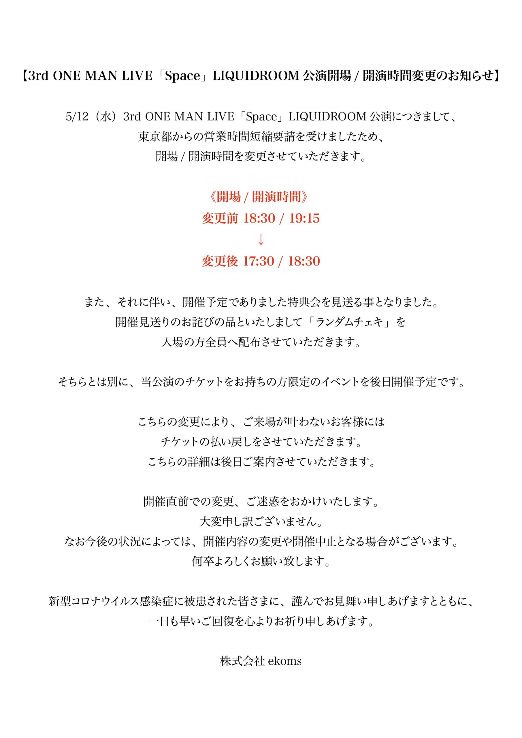 - S席¥4,500(税込・ドリンクチャージ別)、A席 ¥3,000-(税込・ドリンクチャージ別)、撮影可能エリア ¥4,000(税込・ドリンクチャージ別)